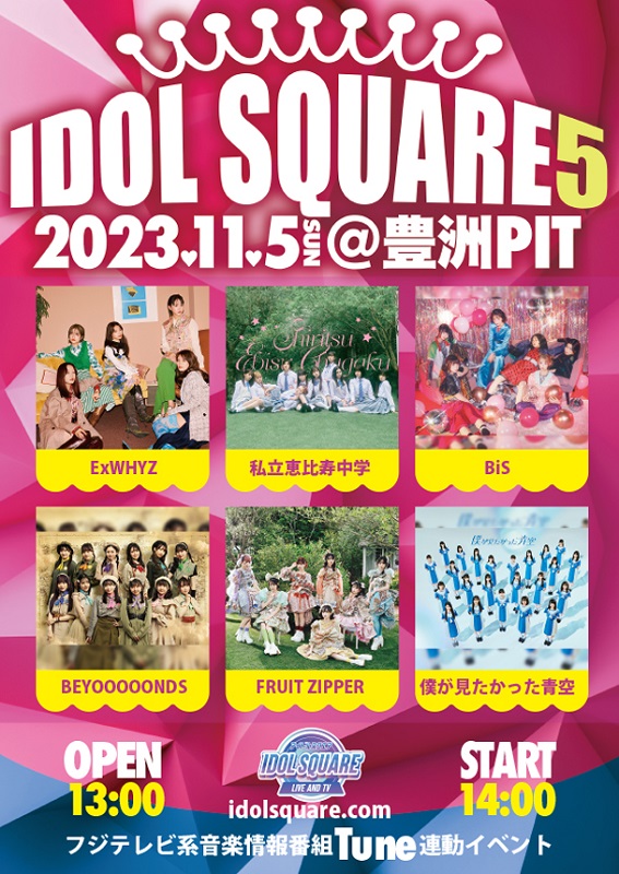 私立恵比寿中学、BEYOOOOONDSら出演 フジテレビ音楽番組「Tune」連動イベント『IDOL SQUARE 5』開催決定