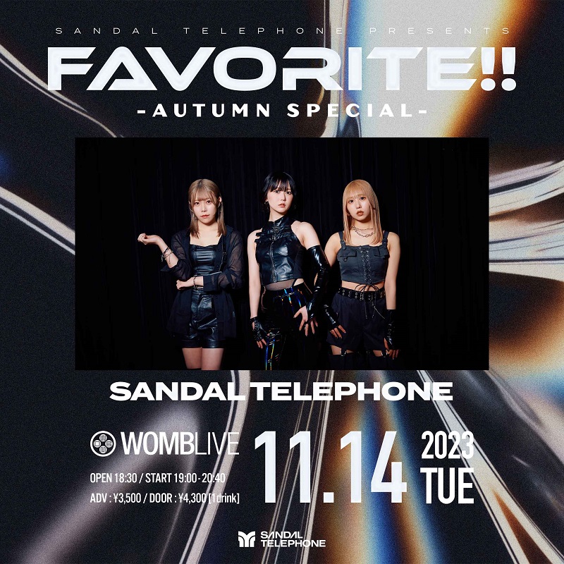 3人組ガールズグループ・SANDAL TELEPHONEが11月14日、渋谷WOMBにて、主催ライブイベント「SANDAL TELEPHONE Presents “Favorite!! -Autumn Special”」を開催することを発表した。