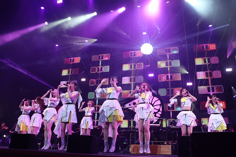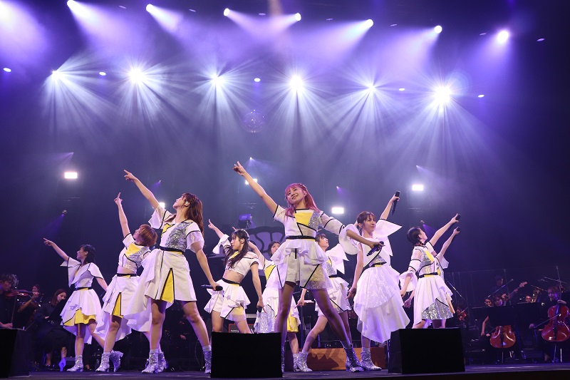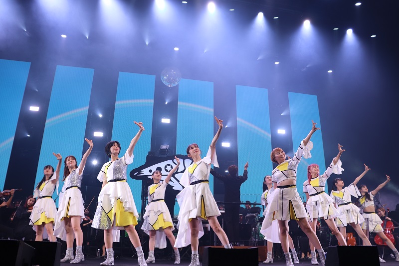 仲村悠菜の「まだまだこの贅沢な環境でのパフォーマンスを楽しみたいと思います」の合図で「ジブンアップデート」、「シンガロン・シンガソン」と6面のLEDが華やかに彩る中、アップテンポな曲でファミリーを魅了した。オーケストラがユニゾンの魅力を引き立て「日進月歩」を歌い上げると、ムードは一転。