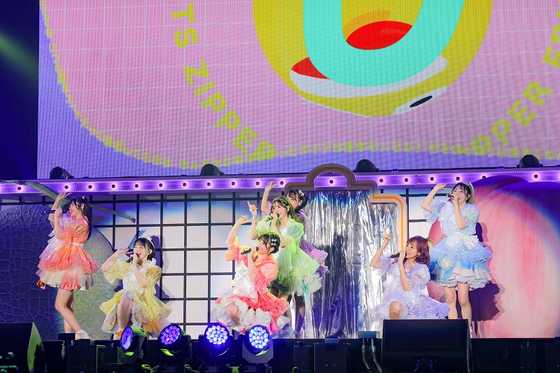 『ふれふるサマー!』では巨大なフロートで会場を駆け巡り、ファンとメンバーが急接近する場面も。10月末にもかかわらず、会場は真夏のような盛り上がりを見せる。ファンの熱気が上がるなか、『RADIO GALAXY』でもレーザーなどド派手な演出を展開し、東京体育館はダンスホールと化す。その勢いを止めず、『ハートのローラーコースター』、今回のツアー用にリミックスされた『We are Frontier』や『ずっと、ずっと、ずっと!』を立て続けに披露し、会場をエモーショナルな雰囲気に包み込む。前半戦ラストには9月に行われた神奈川公演で初披露した『CO-個性』をファンへ届け、FRUITS ZIPPERの持つ色とりどりな個性を発揮した。