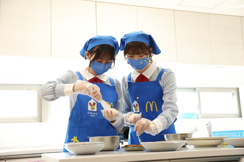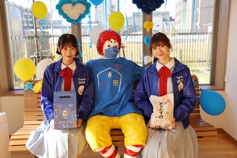 午前中に訪問したマクドナルド河渡コメリ店での活動のあと「ドナルド・マクドナルド・ハウス にいがた」に訪問。ハウスマネージャーの稲川欣也氏に募金を届けるとともに、「⻘いマックの日」の活動を報告。今年も NGT48 の農業プロジェクトで収穫したお米「ときむすめ」の寄付をした。利用者に食べてもらうため「ときむすめ」でおにぎり作りに挑戦。ボランティアの方たちと一緒に愛情を込めて握った。