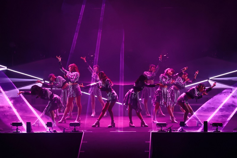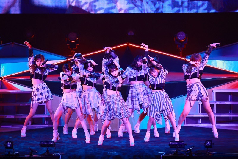本編は強い女性像を歌った楽曲『アイノケダモノ』でスタート。佐々木莉佳子を中心とした獣のような振り付けのダンスで、一曲目から自分たちの世界へ引きこんでいく。その後も『乙女の逆襲』『泳げないMermaid』『マナーモード』と立て続けにパフォーマンス。ミステリアスなダンスナンバーから、切ないミディアムナンバー、そしてアップチューンな楽曲と、ファーストターンから多彩な楽曲バリエーションを披露。グループとしての楽曲の引き出しの多さに、冒頭から圧倒されてしまう。