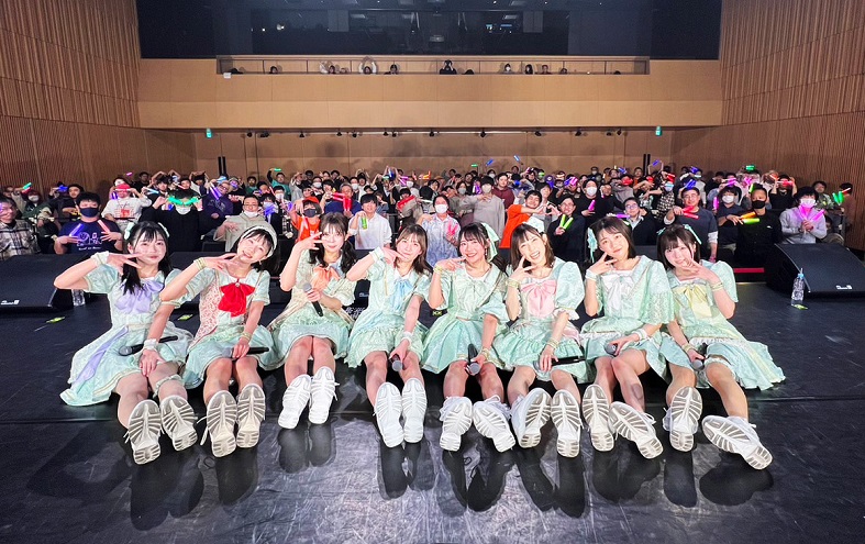 昨年末にメンバーの卒業があったのち、新メンバーの髙田あかり、孫田ちひろが加入。8名新体制お披露目ライブでは、MCを含む15曲を圧巻のパフォーマンスで展開。このお披露目ライブは「アイマイパラレル」で開幕。以降、「にんげんフェスティバル」 「恋はプリズム」 「ミートソースパスタ」 「アイマイスターマイン」 と新旧織り交ぜた楽曲で魅了した。