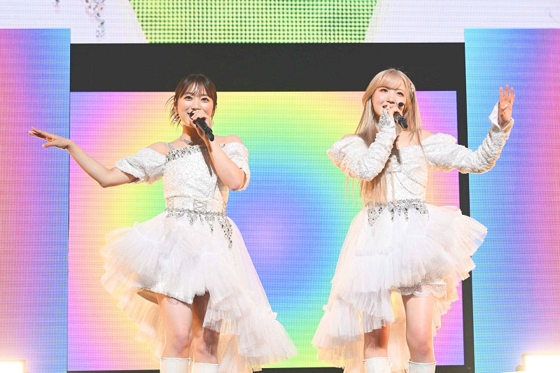 するとここで、矢吹奈子がサプライズで登場。二人のために用意されたシンメトリーの衣装に身を包み、48 グループ・乃木坂46・欅坂 46・IZ*ONE メンバーで結成されたユニット「IZ4648」の楽曲『必然性』を披露。“ひぃなこ”の愛称でも親しまれている元 IZ*ONE コンビの息の合ったパフォーマンスに、会場はこの日一番の大歓声に包まれた。昨年 4 月に同会場で卒業コンサートを行った矢吹は「ひぃちゃんの卒コンに来れて嬉しいです! 私もこのステージで卒業コンサートをさせていただいたので、踊るのは 10 ヵ月ぶりぐらいかな?もうね、1 曲で辛いかも(笑)。みなさん、今日は瞬きもあまりしないほうがいいかもしれないです。ひぃちゃんを全部見逃さないように楽しんで帰ってください〜!」とにこやかに呼びかけ、颯爽とステージをした。