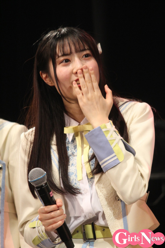 トップバッターで、ファンに向かって「大好きです」と伝えて、ヘナヘナ状態で照れまくる古松華さん。その後もメンバーが順に愛のメッセージを伝え照れる、初々しい姿が次々と見られた。みんなキャピキャピと盛り上がる中、メンバーたちを仕切りコーナーをしっかり進行する西村瑠香さんのMC力も印象的だった。