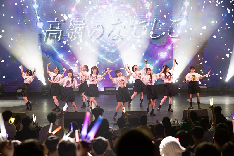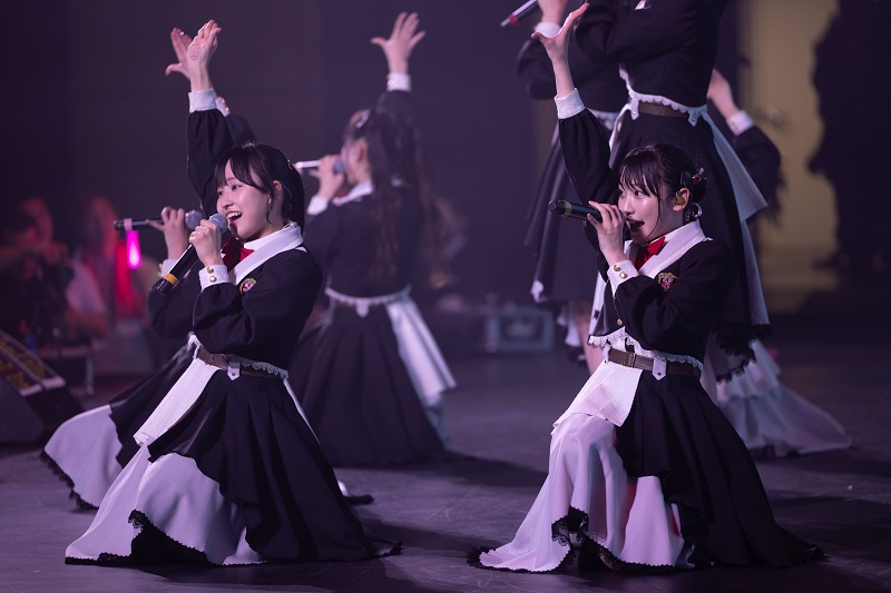 さらに松本ももな・橋本桃呼・日向端ひなによる「世界は恋に落ちている」でじっくりとみずみずしいバラードのハーモニーを響かせ、続いて紺と白に赤をあしらったメジャーデビュー衣装に着替えた葉月紗蘭が「今好きになる。」を歌い上げた。
