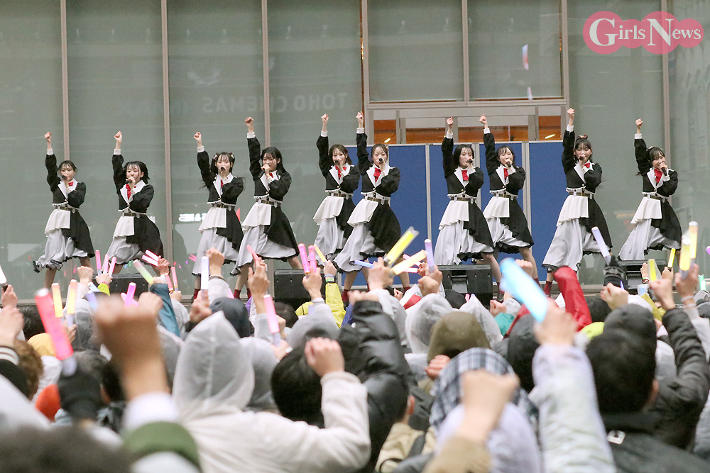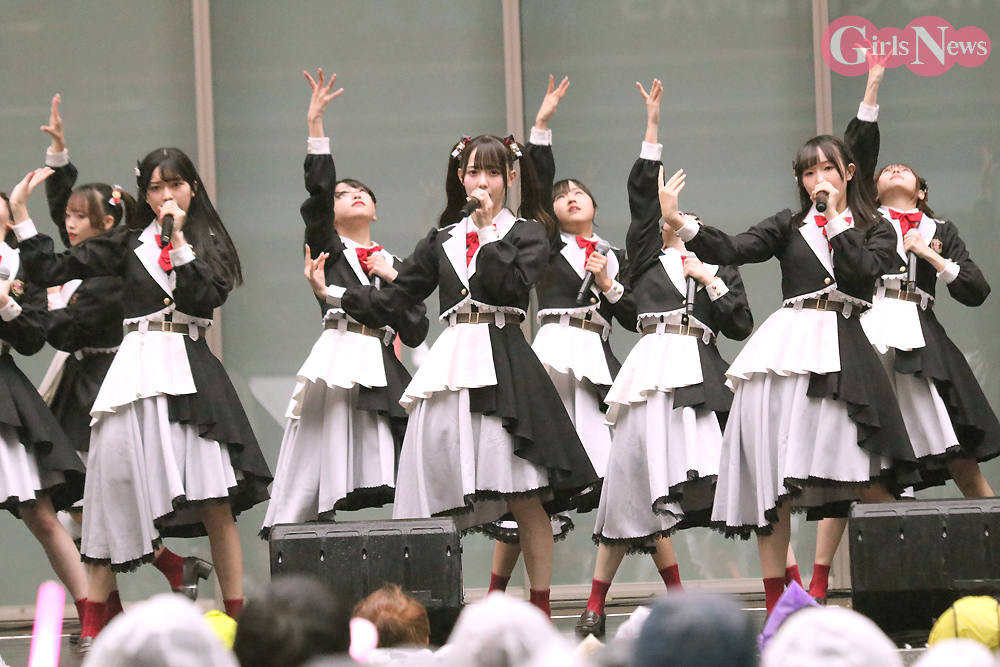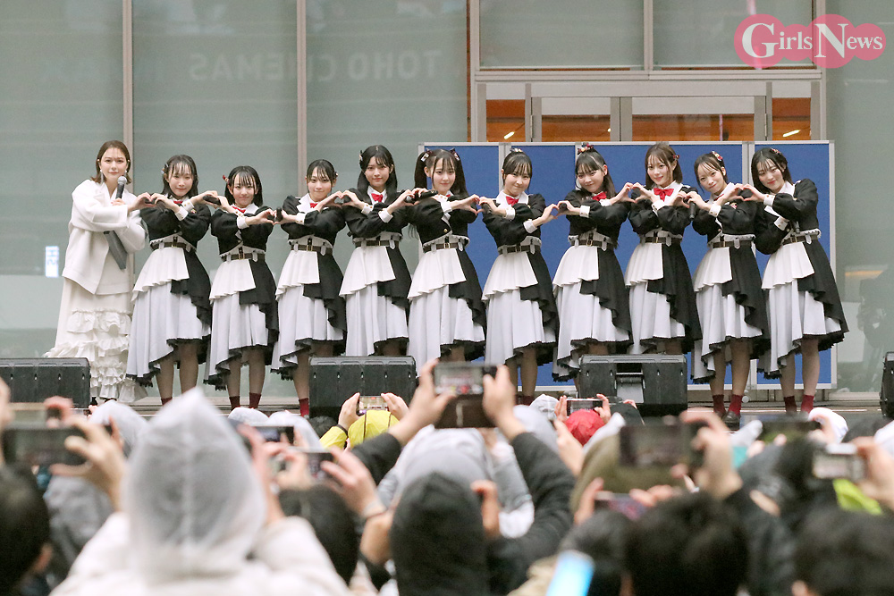 10人組アイドルグループ「高嶺のなでしこ」が21日、ビクターエンタテインメントよりメジャーデビューを迎え、新宿・東急歌舞伎町タワー屋外ステージでリリースイベントを開催した。