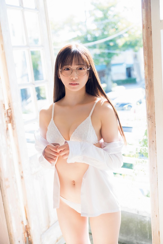 実生活でも優等生だったという彼女が、制服に身をつつんだメガネ女子として登場。あっと驚く展開のグラビアを見せる。
