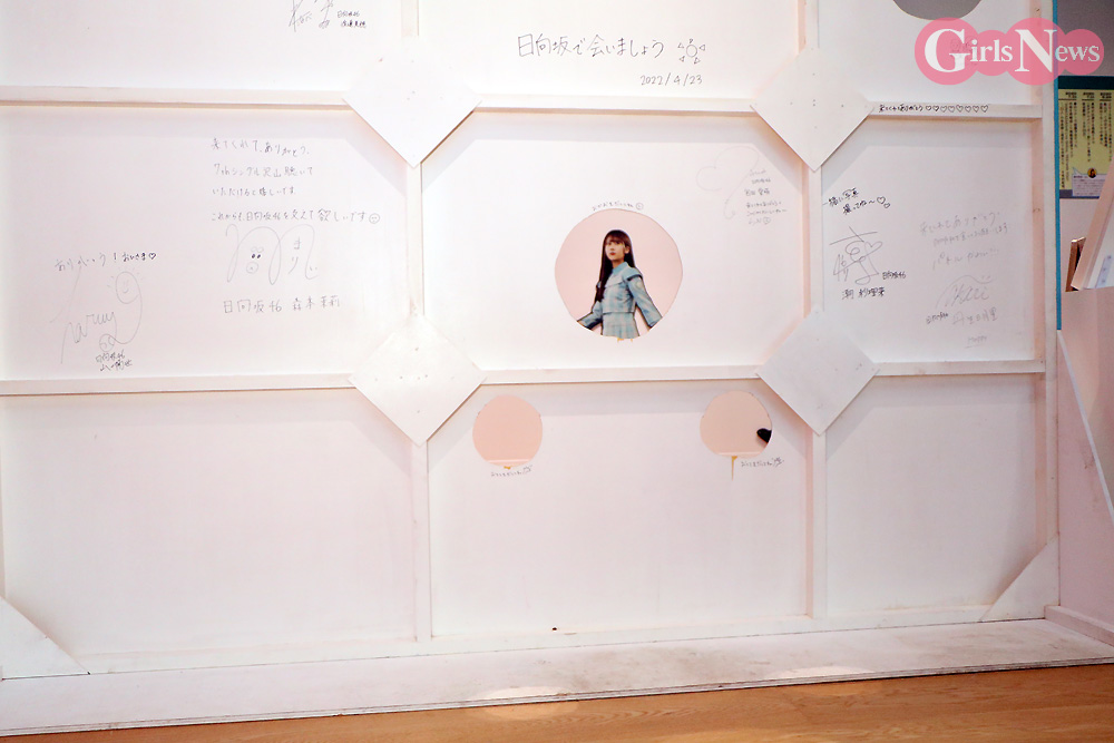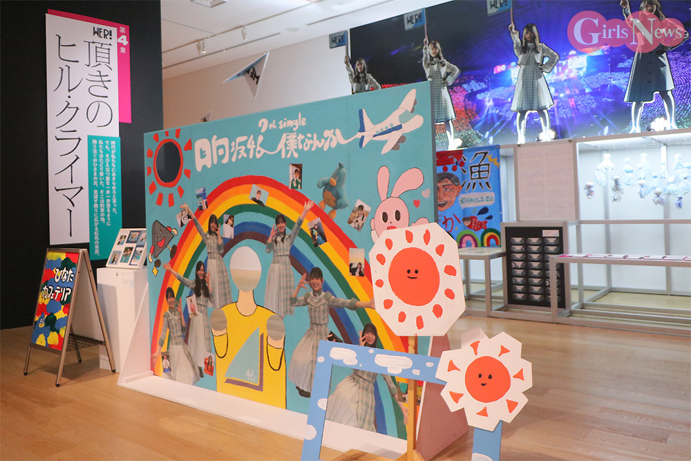 MVやCDジャケットのクリエイティブの制作過程に関する資料や彼女たちの活動における思い出の品を惜しみなく展示している。また、約120体のメンバーの等身大パネルが、展示空間内で彼女らの歴史の物語を誘っていく。歩き、走り、浮かび、時には悩む。まるでメンバーと一緒に歩いているかのような演出にも注目だ。前身グループ「けやき坂46」(ひらがなけやき)から始まる日向坂46の歴史をたどり、さらには未来に向かって突き進む、そんな内容となっている。