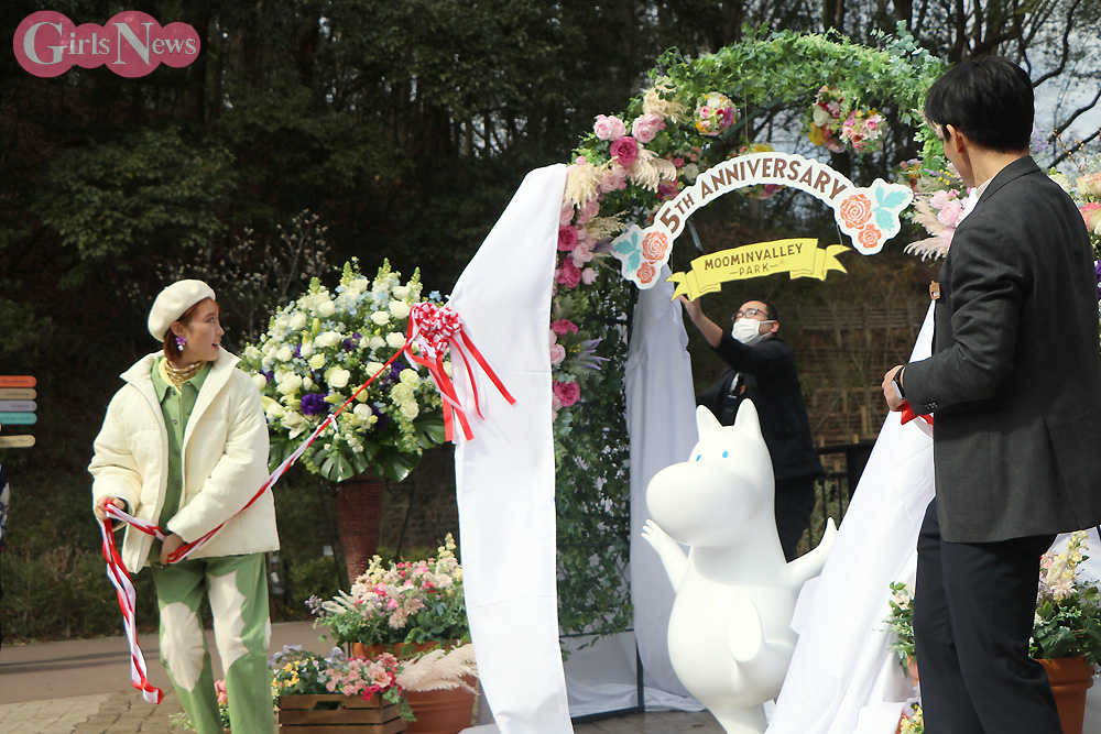 タレントの王林さんが2月29日、埼玉県のテーマパーク「ムーミンバレーパーク」で行われた開業5周年記念イベントに登場した。