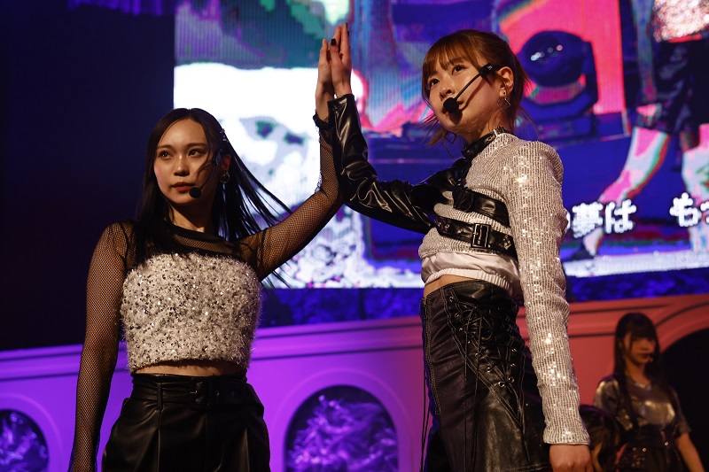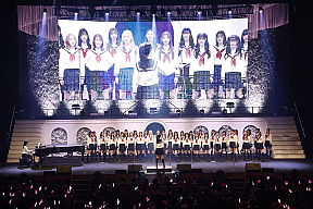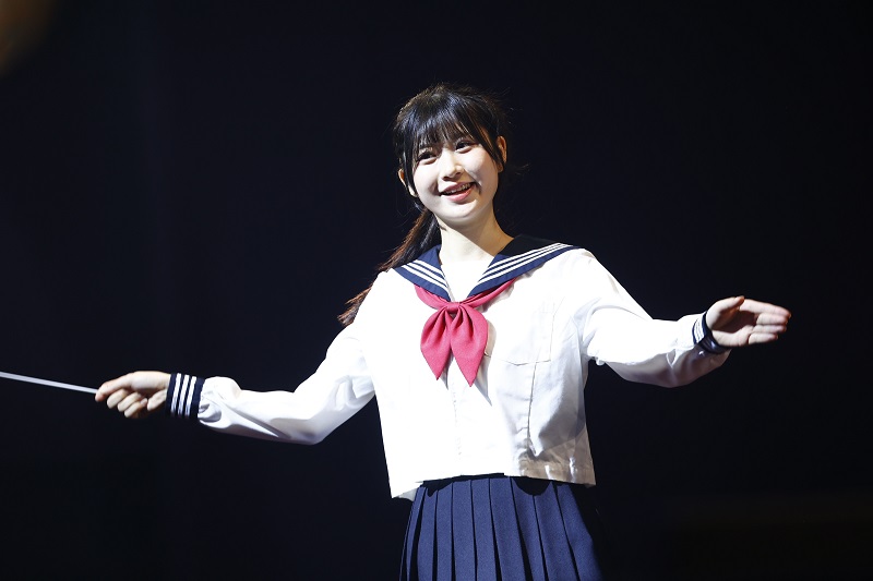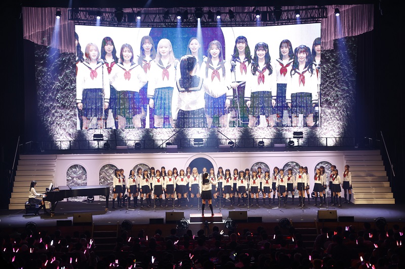 卒業式で多くの学校で歌われている「旅立ちの日に」では、練習を重ねてきた合唱を初披露。ピアノ伴奏は梁瀬鈴雅、指揮は井澤美優が務めた。井澤は「練習のときはメンバーのみんなと目を合わせることが緊張してできなかったんですけど…」と練習を振り返り、涙。市村愛里から「合唱コンクールで金賞でも取った!?」とツッコミが入り、笑いが起こる一幕も。梁瀬は「コロナ禍で合唱コンクールを1度も経験したことがなくて。合唱コンクールでピアノを演奏してみたいという小さい頃からの夢が叶わなかったんですけど、なぜかHKT48になってステージ上で叶えられました」と笑顔。大きな拍手が起こっていた。