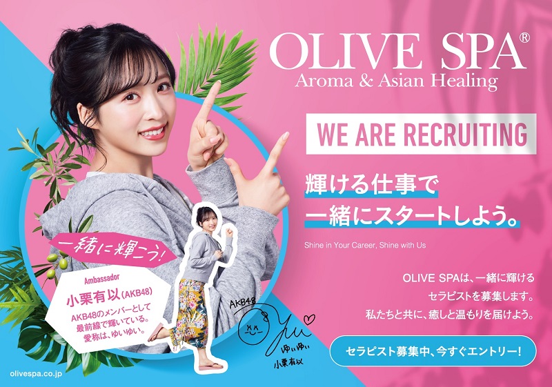AKB48の小栗有以さんが、東京都内を中心に全国17店舗を展開する「OLIVE SPA」を運営する株式会社オリーブスパの広告モデルへの起用が決定した。