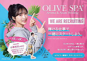 「OLIVE SPA」は、オリジナル技術のアロマトリートメントを提供する完全個室のスパ。小栗さんは同企業のセラピスト採用広告のモデルに起用され、25日から中吊り広告に登場する。中吊り広告は25日より1週間、中央線快速、中央総武線各駅停車の車内にて展開。また、同企業の各SNSにも登場する。