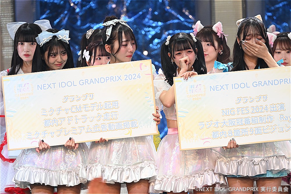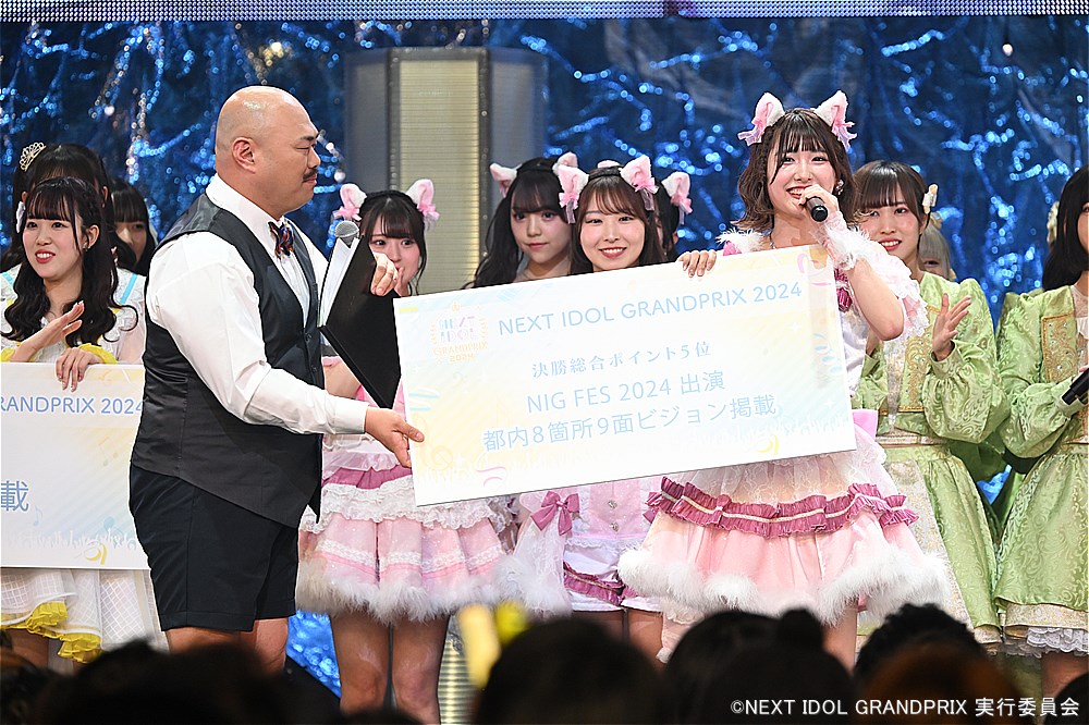 グランプリのほか、準グランプリには「プエラの絶対値」、3位には「MARUKADO(マルカド)」、4位には「PATI PATI CANDY…☆(パチパチキャンディー)」、5位には「miao(ミャオ)」がそれぞれ選ばれた。5組は受賞特典として28日~29日にかけて開催中の「NIG FES 2024」に出演し、憧れのアイドルたちと夢の共演を果たす。
