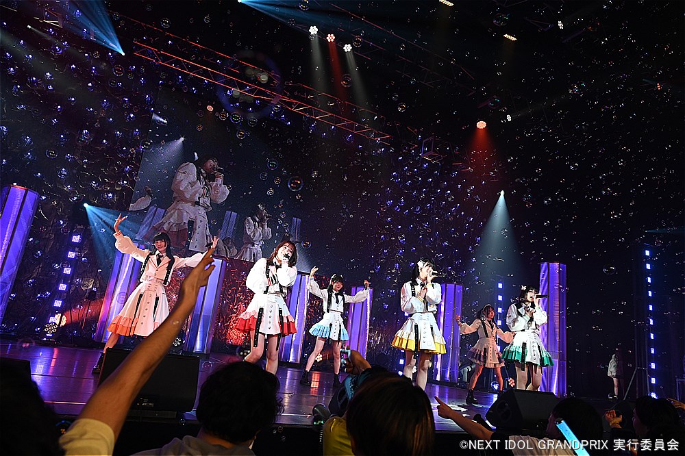 「NIG FES 2024」1日目のトップバッターには、同日開催されたネクストブレイクアイドルの頂点を決める特典総額2,000万円の大型アイドルコンテスト「NIG2024」で5位を受賞した5人組アイドルグループ「miao(ミャオ)」と4位の8人組アイドルグループ「PATI PATI CANDY…☆(パチパチキャンディー)」が登場し、コンテストでの興奮そのままに開演直後の会場を一気に盛り上げた。デビュー1年目の「Wenus」、「SAI ²Rium」(NIG2023 グランプリ)、「iSPY」(NIG2022 グランプリ)に続いて、2024年2月に10周年を迎えた、株式会社DONUTSが提供中のスマートフォン向けゲームアプリ『Tokyo 7th シスターズ』の「EPISODE 2053」から、「RiPoP(from Tokyo 7th シスターズ)」が初登場。「ゴチャメチャ×ワンダーランド」をはじめとする二人ユニットらしい息ぴったりの3曲を披露し、第一部のラストは「Onephony」が飾った。