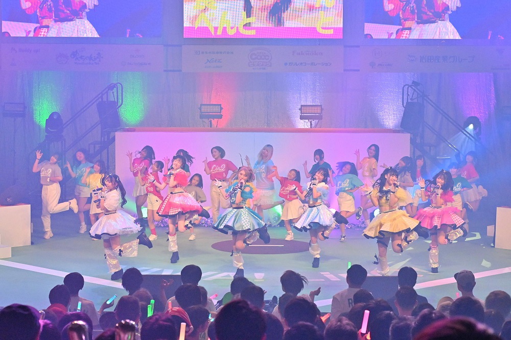 再びLinQが登場すると、4月10日にリリースした新曲『おべんとう』をTikTok企画で集まったおべんとうガールと共に披露。そしてLinQのライブアンセム『ハレハレ☆パレード』『Go!Go!Yell〜キミ・イズ・ビューティフル〜』『FUKUOKA。〜福を可するのだ♪〜』を立て続けに披露すると、会場のボルテージは最高潮に。福岡市民会館は興奮のるつぼとなった。