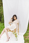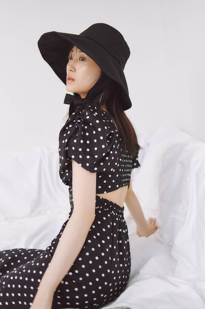 トレンドカラーの赤が目を惹くキャミワンピースや、落ち着いたくすみピンクのサマーツイードパンツ、ドット柄のレディなマーメイドワンピースなど、そのほかもチュールやメッシュのディテールが揃い、夏ムードに高めてくれる今季の最新コレクション。可愛らしさと色気が合わさったコーディネートと山下さんの艶やかな表情に注目だ。