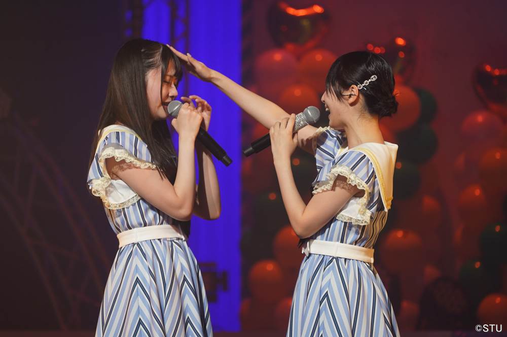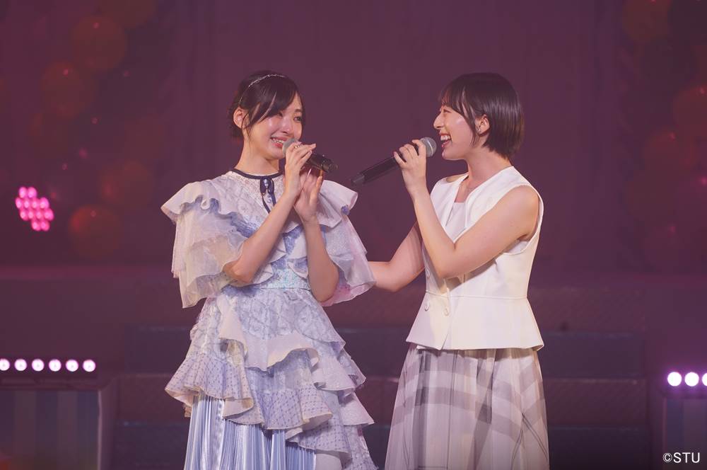 2019年STU48 2ndシングル『風を待つ』のカップリング曲としてドラフト3期生のために書き下ろされた『やがて菜の花が咲く頃』からスタートすると客席は菜の花色のペンライトカラーの花畑ができた。冒頭の挨拶では早速、沖と中村舞の恒例の喧嘩が勃発か?と思わせるトークが繰り広げられ客席からは笑いが起こったが、続いて沖と中村で披露した『思い出のほとんど』では涙を堪えきれない中村の肩を抱く沖の姿に客席は感動の渦に巻き込まれた。