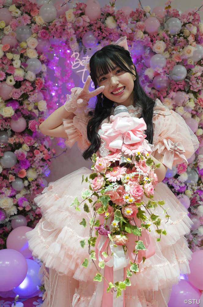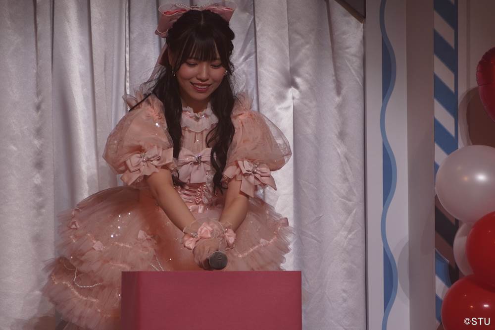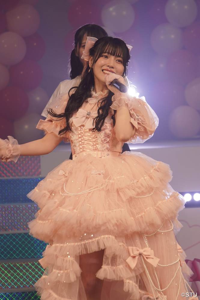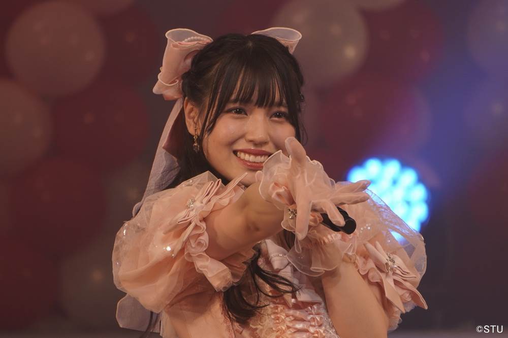 中学3年生のときに、地元の山口県が活動拠点に入っているこのSTU48のオーディションに落ちたらもう私はアイドルにはなれないんだろうなと思い、最後のチャンスだと思ってオーディションを受け、そして今ここにいるメンバー達と出会えて、ファンのみなさんと出会えて本当に幸せです。頑張ってよかったな、諦めないで夢を追い続けてよかったなってすごく思います。