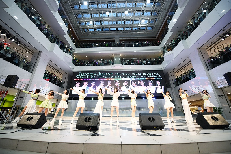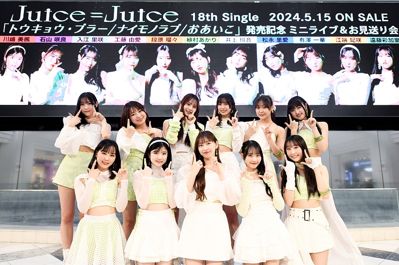 ハロー!プロジェクトのアイドルグループ・Juice=Juice が 15 日、東京・池袋のサンシャインシティ 噴水広場で 18th シングル『トウキョウ・ブラー/ナイモノラブ/おあいこ』の発売を記念する「ミニライブ&お見送り会イベント」を開催した。イベント直前の記者会見では詰めかけたファンを前に、11 人のメンバーがそろって報道陣の質問に応じた。