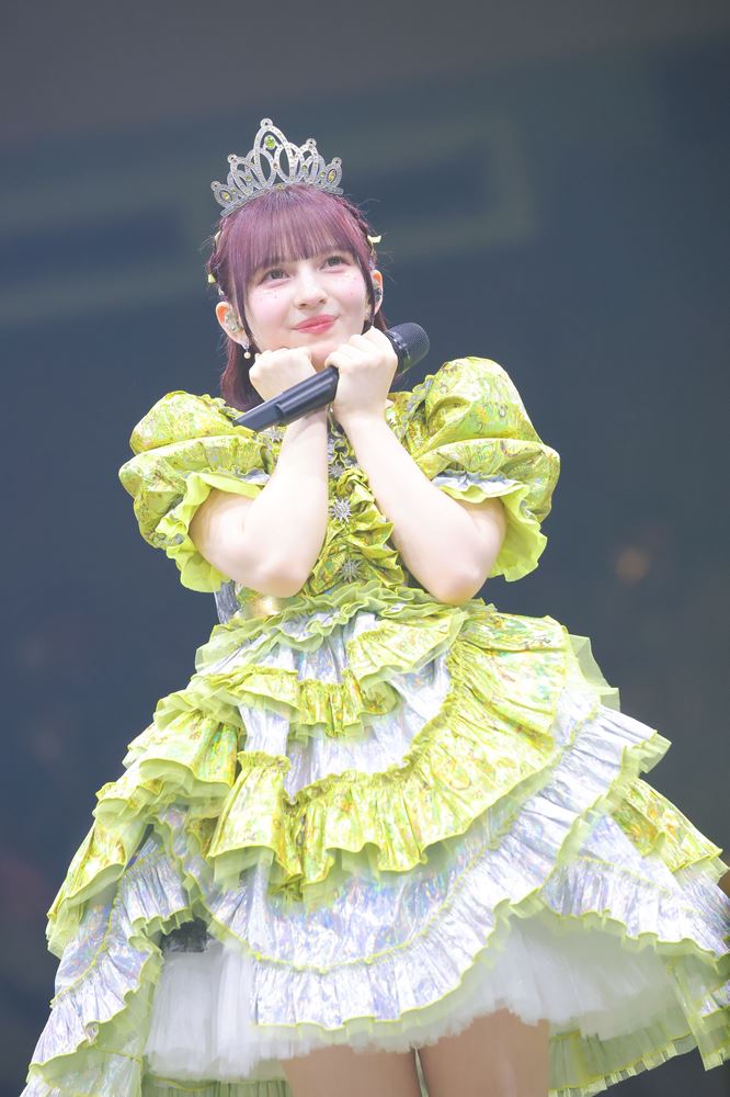 仲川瑠夏さんは「ほんとはセンターステージじゃない形でやろうってなってたんですけど、でも、先輩の新しい学校のリーダーズさんがセンターステージでやってたの見てたから、私たちも絶対センターステージで成功させたいっていう気持ちがみんなであって、スタッフさんに相談してセンターステージにしてもらいました。みんなの頑張った力や、私たちがみんなを幸せにするパワーを、みんなにバーって、ばらまきたいです」