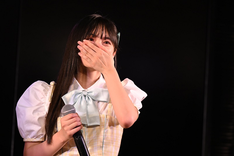 初めての公演で不安なことがたくさんあり、正直私には無理なのかなと考えてしまった⽇がありました。ですがファンのみなさんが公演を楽しみに待ってくださっていたのを活⼒に頑張ることができました。本番をすごく楽しめたので、私にとってはすごく素敵な初⽇になりました。⾄らない部分はたくさんありますが、これから難しいことにも突き進んで「私」を魅せれるよう頑張ります︕今までダンスをやっていたので表情づくりはすごく得意な⽅だったので、表情に加えて、⾸の⾓度や体の⾓度で曲に合った印象を⾒せれるように研究しました。特に『制服が邪魔をする』の時の⾓度に注⽬していただけたら嬉しいです︕