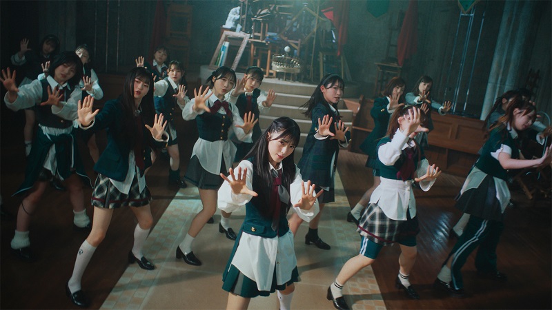 そんな今作のMVの監督を務めたのは、SEKAI NO OWARI『Habit』のMVなどで知られる俳優・映像監督の池⽥⼤⽒。MVでは学校という「⽇常」に違和感やファンタジーといった「⾮⽇常」を加えた世界観の中で、“新⽣AKB48の⾰命宣⾔、チーム全員で勝つ”というテーマを表現。感情をぶつけるように踊りながら廊下を突き進むシーン、椅⼦や机が積まれたバリケードの中での気迫溢れるダンスシーンには、“AKB48の新時代の狼煙を上げる”という⾰命前夜の彼⼥たちの強い想いがみなぎっており、ラストでは扉の先の光へと駆け出していく。まさに次のステージへと向かう新たなAKB48を印象づける映像作品となっている。