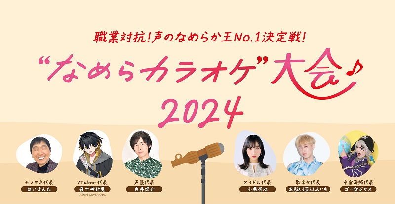 「パピコ」の魅力をより多くの人に知ってもらうべく、昨年に引き続き開催される「パピコ なめらカラオケ大会2024」。今年は、「声」を職業とするプロフェッショナルたちが、「パピコ」のテレビCMの楽曲で、課題曲でもある「なめらか方程式」を歌唱してその点数を競い、声のなめらか王No.1を決定する。