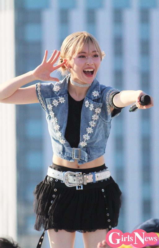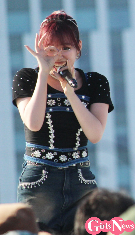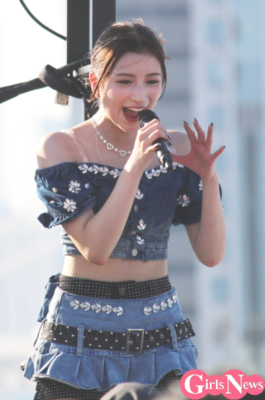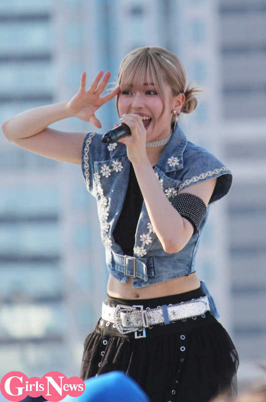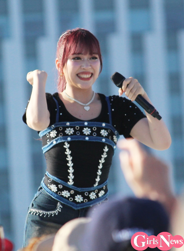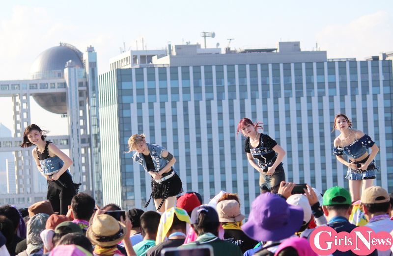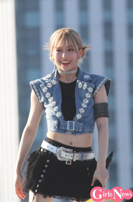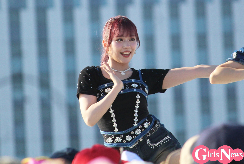 その後のSKY STAGEでは、時間は夕方に差し掛かっていたとはいえ、陽射しが照りつける、酷暑の野外ライブとなった。そんな中爽やかな『Mr.Gorgeous』からスタート。ラブリーなテイストで、MOMOのあざと可愛いセリフもあり場内をキュンキュンさせた。