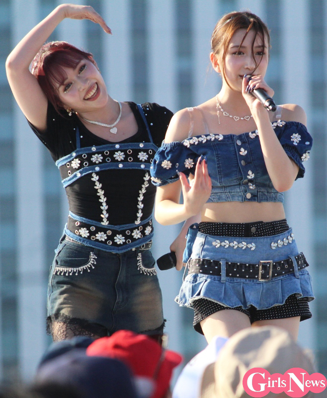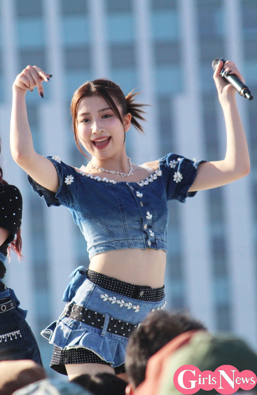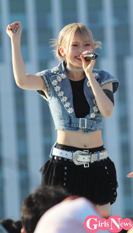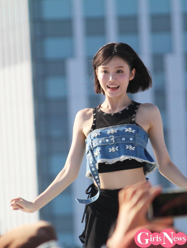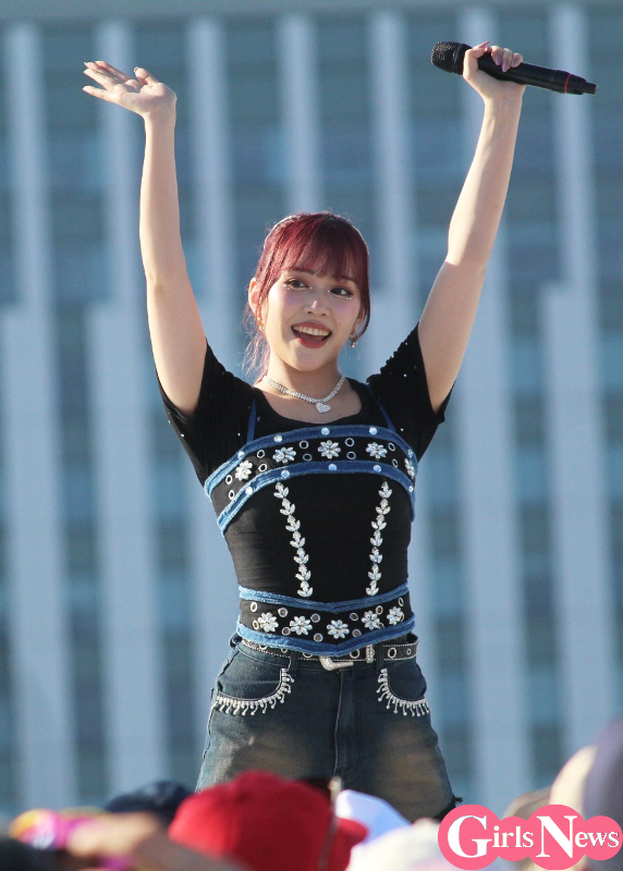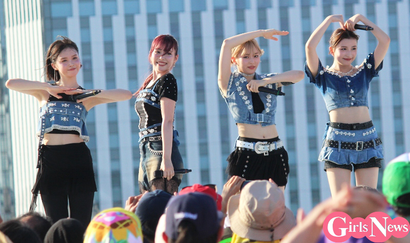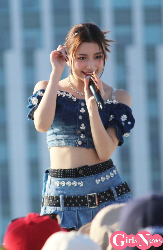 その後のSKY STAGEでは、時間は夕方に差し掛かっていたとはいえ、陽射しが照りつける、酷暑の野外ライブとなった。そんな中爽やかな『Mr.Gorgeous』からスタート。ラブリーなテイストで、MOMOのあざと可愛いセリフもあり場内をキュンキュンさせた。