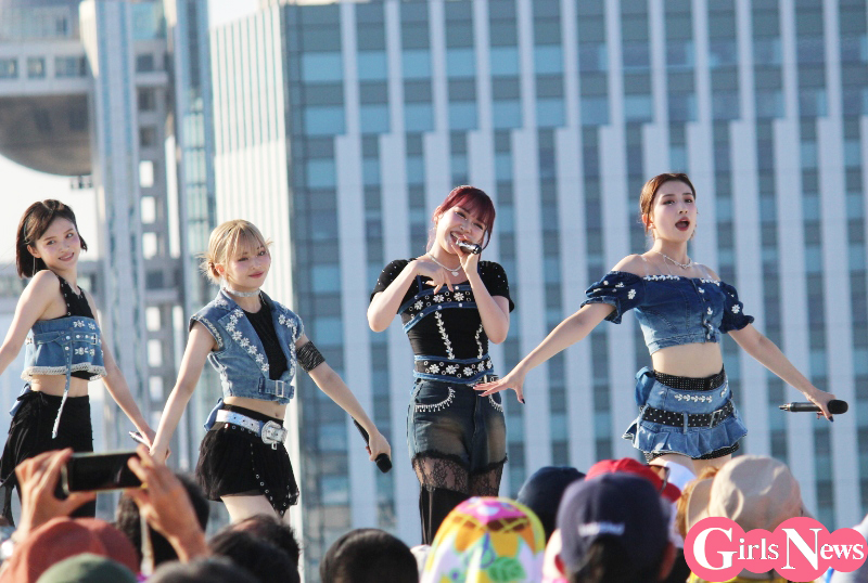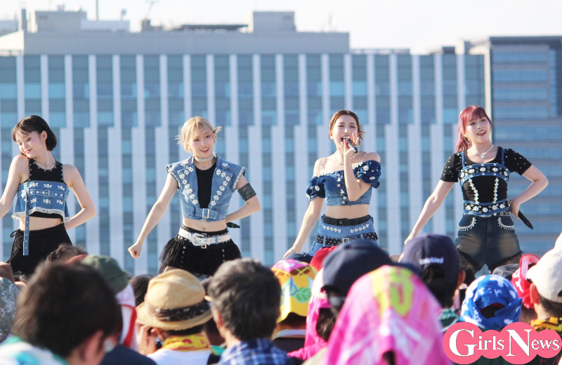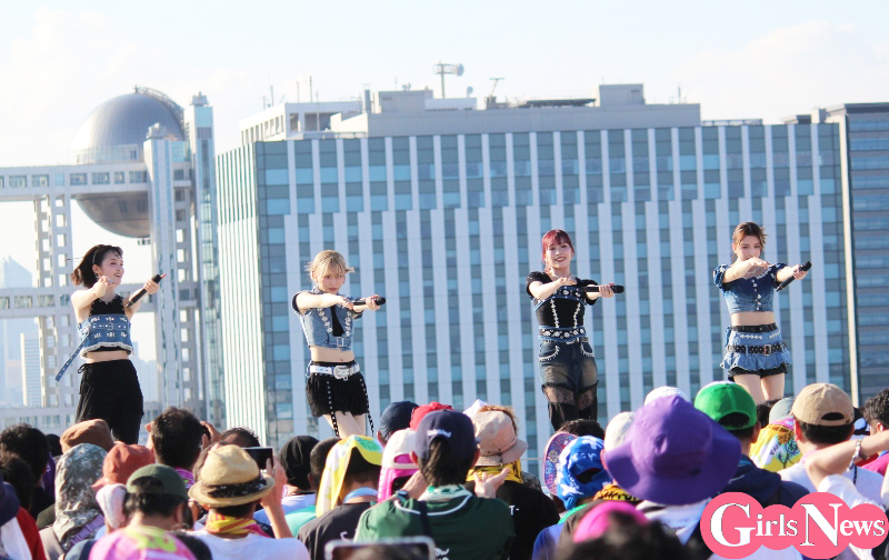 今夏のTIF一発目、HEAT GARAGEのステージでは、昨年同会場で披露し、その重低音のサウンドとHIP HOPダンスのインパクトで話題になった『Justice Day』でスタート。続いて、メジャーデビューシングル曲で、彼女たちがメインキャストで出演した映画『劇場版 推しが武道館いってくれたら死ぬ』の主題歌でポップな『Chance』、メジャー1stアルバムから『F.A.F.O』などを披露。そしてアルバムのリード曲の『OZGi』へ。アイドルフェスではちょっと異質な楽曲、そして、おじぎを高速でしまくるという“OZGiダンス”で、今年も大きなインパクトを残した。