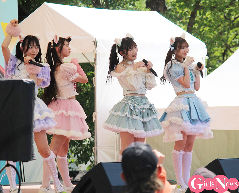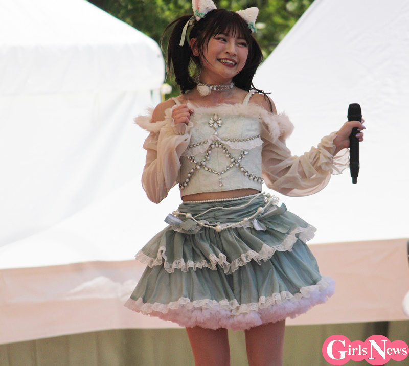そしてこの夏の新曲、今月21日発売の『夏恋ジレンマ』を可愛く爽やかに披露したあとは、激しいロックナンバー『清濁あわせていただくにゃー』を、勢いたっぷりのボーカル&ダンスで魅せる。ラストは初期からの代表曲の一つ『いぬねこ。青春真っ盛り』を投下。酷暑を吹き飛ばすような、盛り上がりナンバー続きのセットリストとなった。