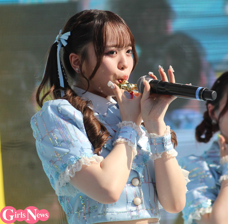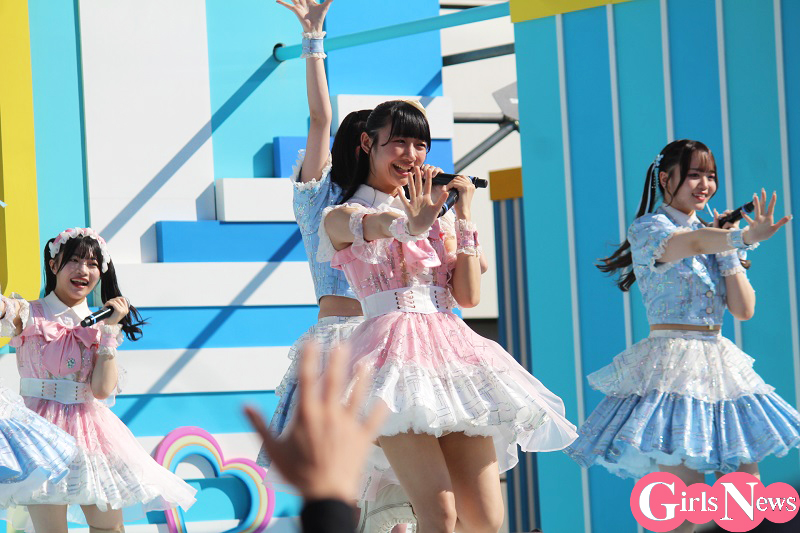 2日のHEAT GARAGE(Zepp Divercity(TOKYO))、3日のSMILE GARDENに引き続いてのライブは、陽射しが照りつける灼熱と化したステージ。そんな中、先月発売したばかりの新曲『とびきりだれより夏っぽいこと』からスタートした。初の単独センターを務める柏綾菜さんを中心に、キュンキュンする可愛さ全開、かつスパガらしさもいっぱいの今年の夏曲。メンバーたちは汗を流しつつも、爽やかにパフォーマンスした。