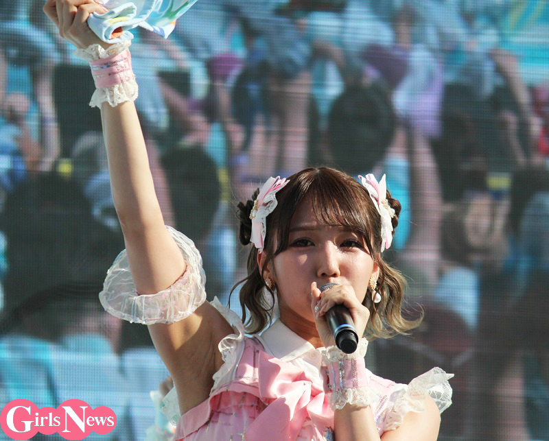 その後、『プリプリ♥SUMMERキッス』、そして夏曲の中でも特に人気の高い『ナツカレ★バケーション』へ。キャッチーなメロディと可愛い歌声、間奏でのラインダンスなど勢いいっぱいの振り付けで場内の盛り上がりは最高潮に。ラストの『JOY! & JOY!!』はタオル曲で、メンバーと会場がタオルを回し一体感につつまれ、元気いっぱいに今年のTIFのステージを締めくくった。