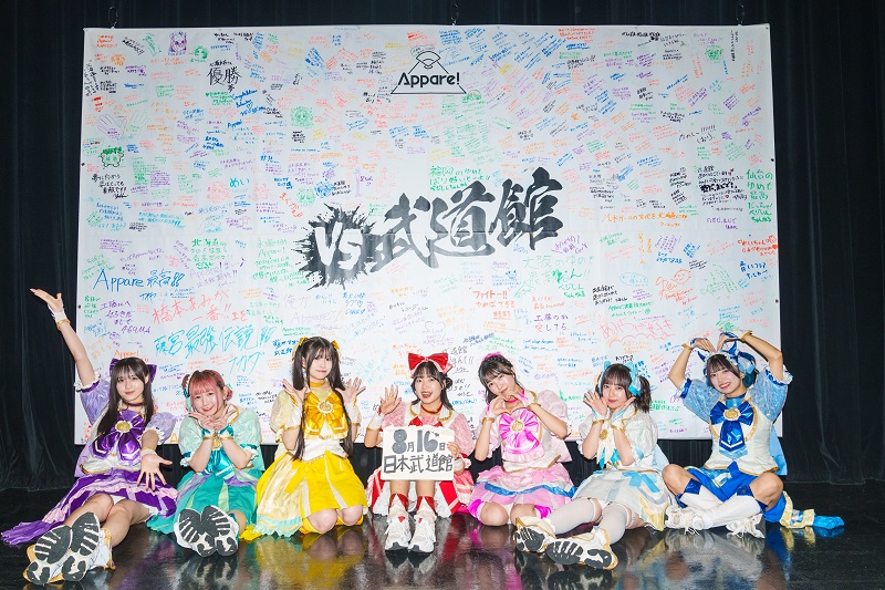 7月29日には今回の日本武道館初のワンマンライブに向けた『VS武道館』の最後となる『VS武道館 其の五』を東京・Zepp DiverCityで開催。会場に詰めかけた竹の子(ファンの呼称)を前に日本武道館公演を前にした抑えきれないエネルギーを発散させた。そんなAppare!メンバーから夢の日本武道館ライブの生中継を前にコメントが届けられた。