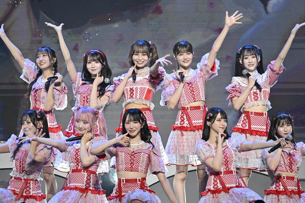 華やかなパフォーマンスが息をつく暇もなく連続し、会場の高揚感は天井知らずに上昇していく。「夏祭り恋慕う」の曲中にはスクリーンの映像内に盛大な花火が打ち上がった。そして公演本編のラスト、注目曲である「絶対アイドル辞めないで」を再び披露。大きな高揚感を生み出すと、紙吹雪がきらめく中でステージをあとにした。