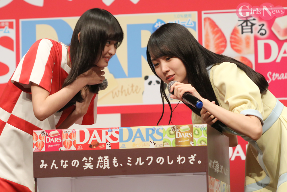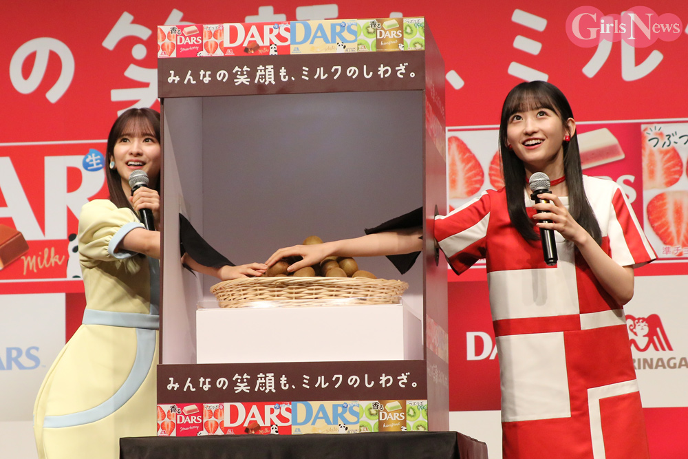 イベントではメンバーが手触りや香りだけで箱の中身を当てるゲームに挑戦。「梅澤・菅原・遠藤」のチームが勝利し、巨大サイズのダースを獲得した。