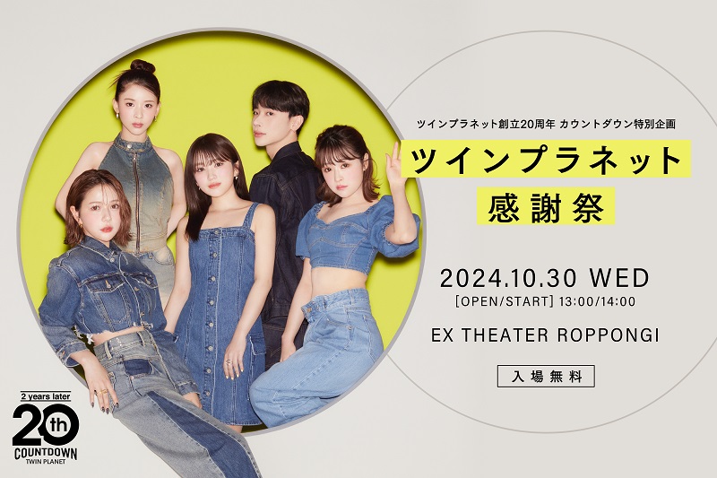 村重杏奈、⽮吹奈⼦、高嶺のなでしこらが所属する芸能事務所・ツイ ンプラネットが、2026年に創⽴20周年を迎えるにあたり、“ツインプラネット創⽴20周年 カウントダウン特別企画第2弾”として、所属タレントが集結する初のスペシャルイベント『ツインプラネット感謝祭』を10⽉30⽇に東京・EX THEATER ROPPONGIにて開催する。