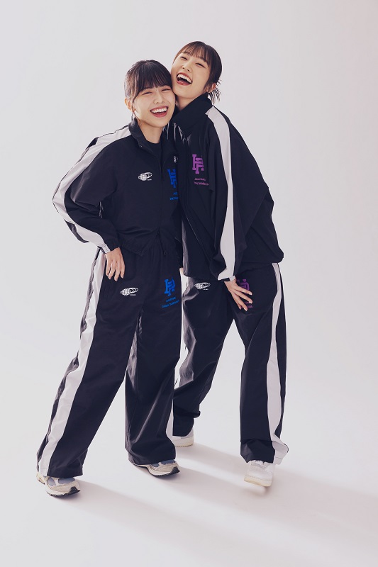 メンバーがレッスンやライブのリハーサルなどで着用しやすいウェアを目指し、素材やカラーなどをメンバーにもヒアリング。メンバーからの熱い要望で、ジャージはナイロン素材を使用し、サイドラインを取り入れることでスタイリッシュに、そしてドローコードを施すことで着こなしの幅を広げられるよう仕上げました。シルエットとバランスにもこだわり、ジャケットのSサイズはショート丈、Mサイズ以上はオーバーサイズに。ボトムスは、程よい緩さがポイントです。また、肩の可動域やストレッチ性、吸汗速乾の生地を採用し、動きやすさと快適さを追求。