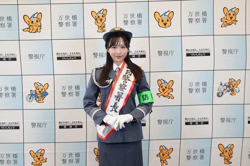 AKB48のメンバー、そして女優としても活躍の場を広げている小栗有以が10日、東京・秋葉原にて「令和6年・万世橋地域安全運動のつどい」に出席し、1 日警察署長に就任した。
