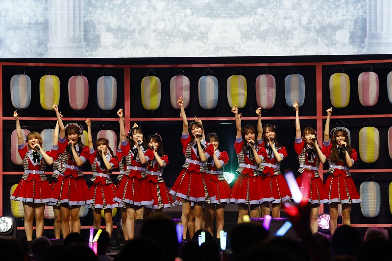 後半パートでは、お互いのグループの楽曲を披露するシャッフルパートを展開。HKT48 は「世界はどこまで青空なのか?」、「あのさ、いや別に•••」を、NGT48 は「突然 Do love me!」、「スキ!スキ!スキップ!」を披露し、二組によるスペシャルLIVE ならではのパフォーマンスを行った。