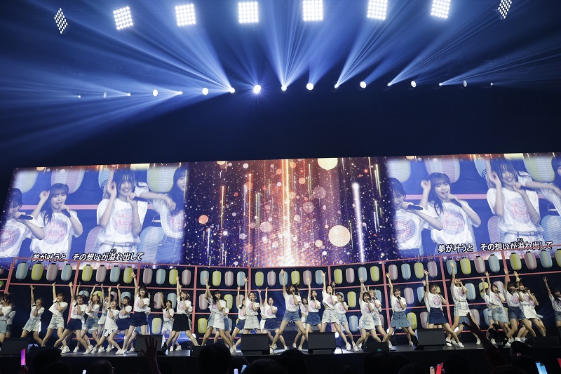 特設ステージでは、HKT48・NGT48 各グループの体力自慢が集まり、ミニ運動会を開催。NGT48 チームが大縄跳びで50 回超えの大記録で勝利。客席を巻き込んで大盛り上がりとなった。