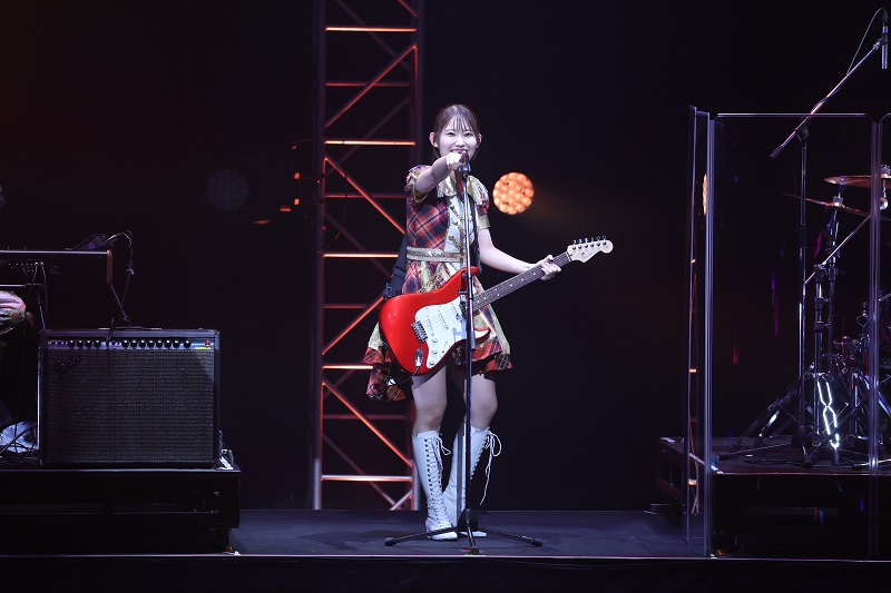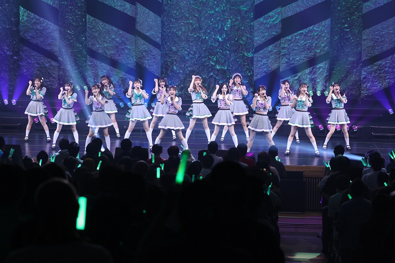 そして、「バンドをやろうよ」からはSKE48 史上初のバンドセットで青木莉樺がギターを演奏。メンバーとパワフルな音楽で会場を一つにした。シングルメドレーでは研究生も加わった全員でのパフォーマンスも行われ、迫力のあるステージで魅せた。