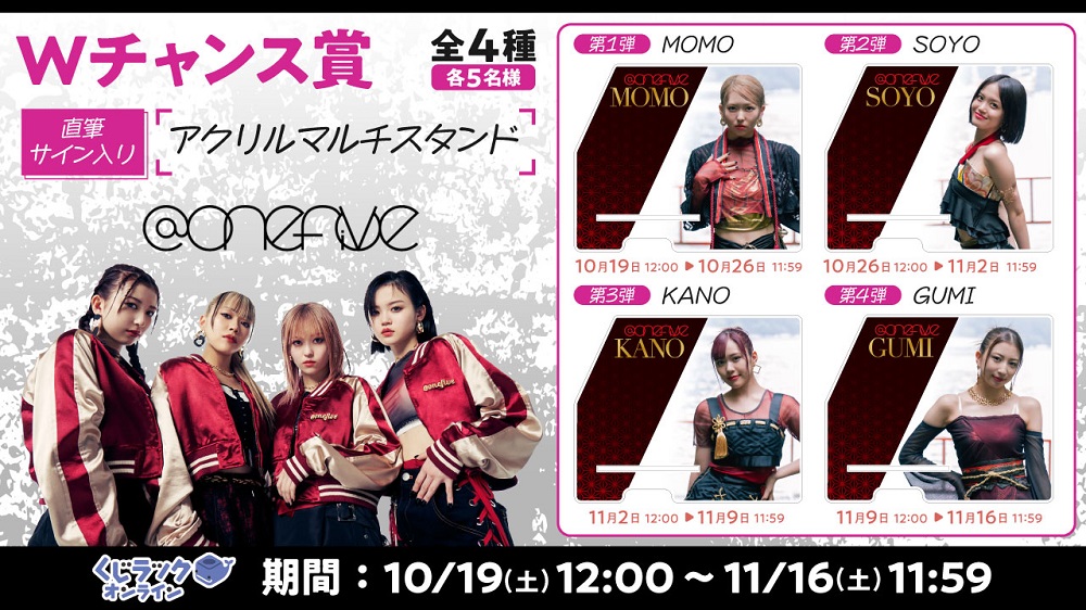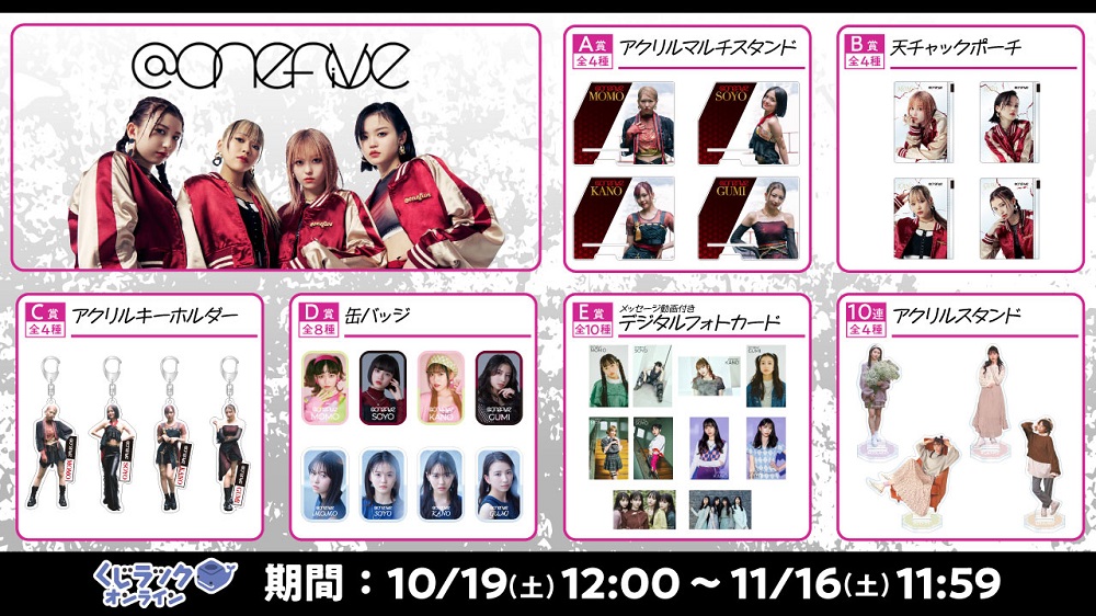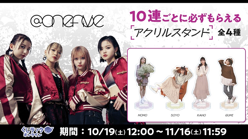4人組ガールズグループ・@onefiveとコラボレーションしたオンラインくじ「くじラックオンライン」が10月19日、カルチュア・エンタテインメントより販売される。