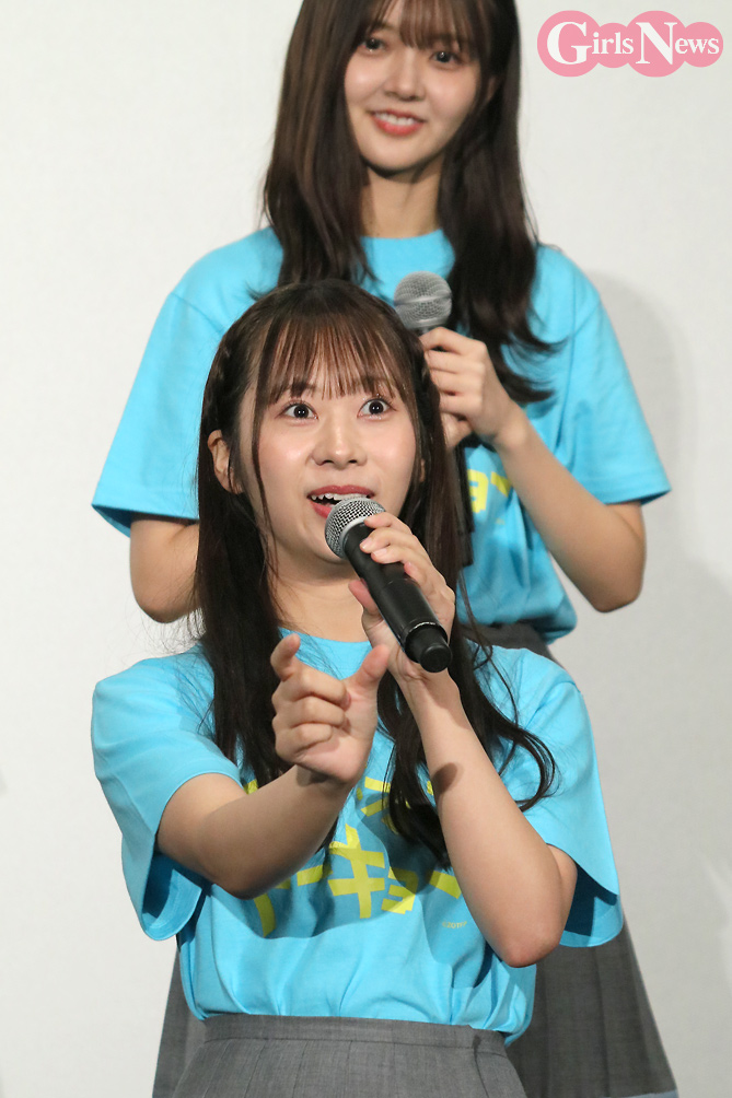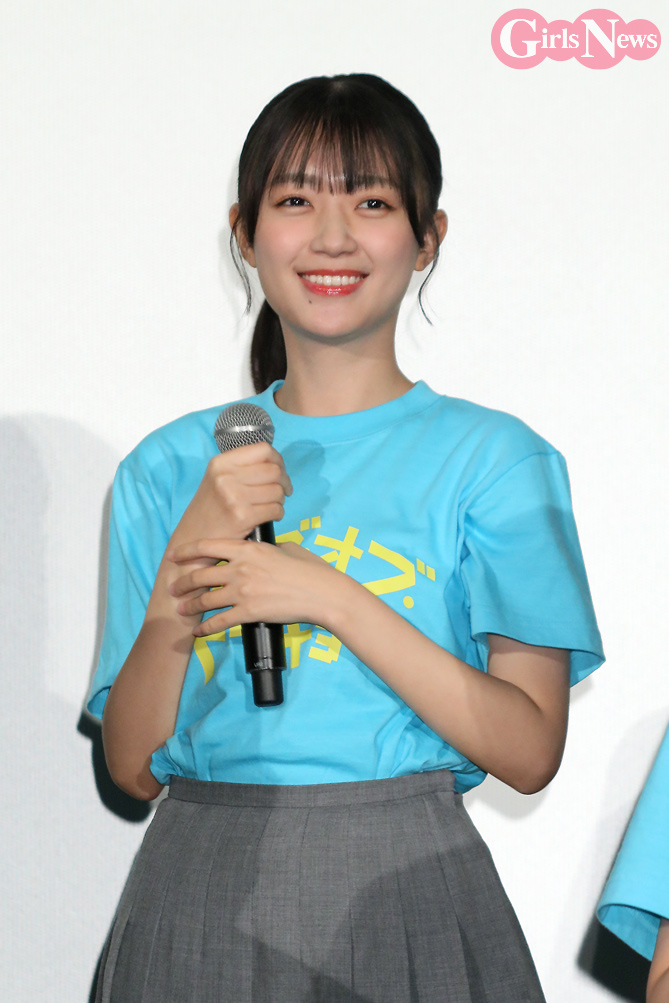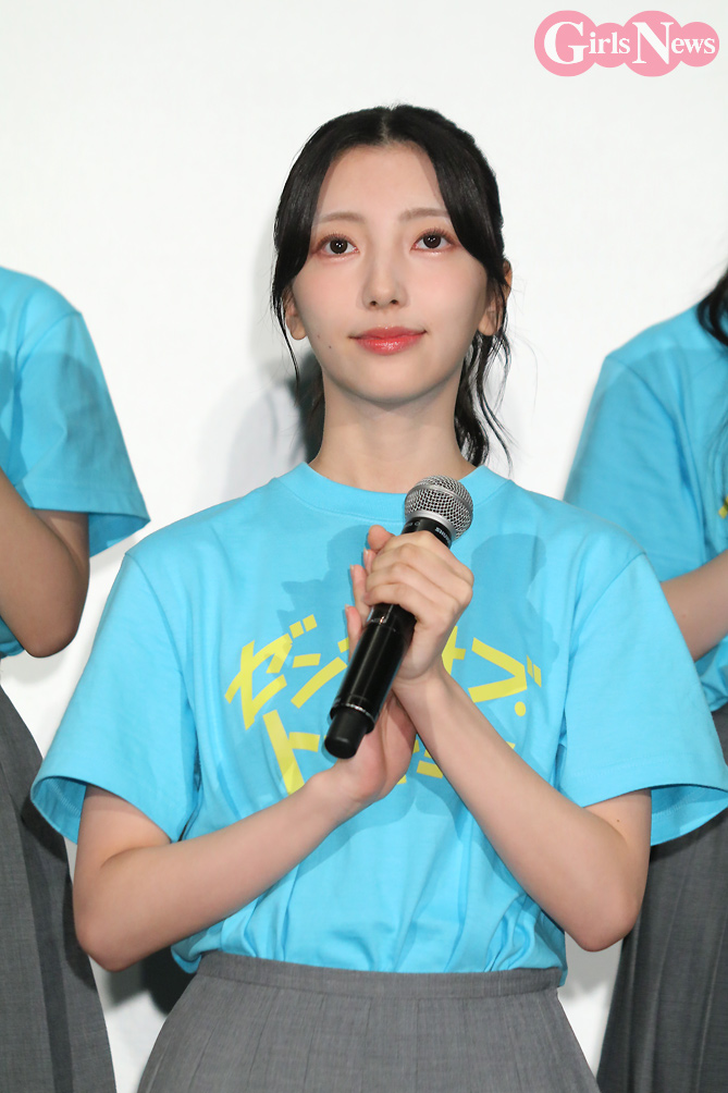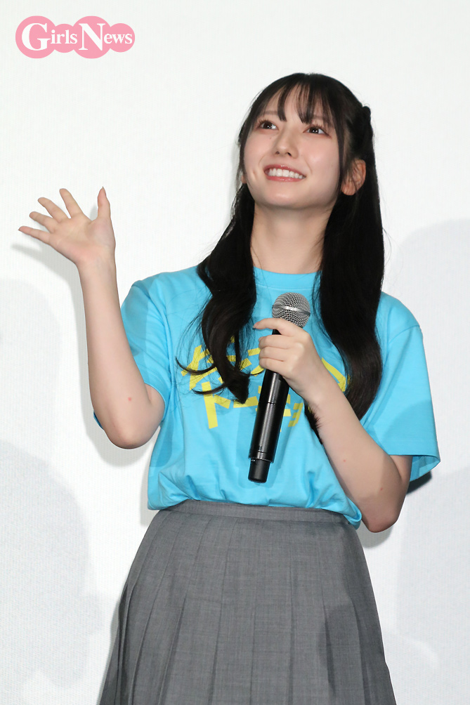 挨拶で正源司さんは、前日に地元・大阪で行われた舞台挨拶を振り返り、「無事に公開日を迎えられて本当に嬉しいです。地元の幼馴染が観に来てくれて胸がいっぱいでした」と、熱い思いを語った。地元の友人から「みんな可愛かった」との感想をもらったと紹介した。また、「この映画は高校生の私たちが等身大で成長する姿を描いています。観る方々に感動や希望を届けられたら嬉しい」と、映画に込めた想いを語った。