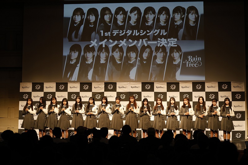 鈴野みおは途中言葉に詰まりながらも「まず選んでいただいてありがとうございます。私が今ここにいるのはずっと私が不安なときに応援してくださったファンの皆さまや、家族のみんな、支えてくださったスタッフのみなさまのおかけがと思っています。本当にありがとうございます。だけど1st シングルは17 人で歌いたいといつも思っていたし、ミランも活動休止になっちゃって、みんながすごく悲しい気持ちでいたけどミランの分も1st デジタルシングルを絶対に成功させます。Rain Tree は17 人でRain Tree なのですっとずっとこの17名で頑張っていきます。ありがとうございます」と絞り出すようにコメントを残した。今回メインメンバーに選ばれなかった10名は、カップリング曲の歌唱メンバーにになる。