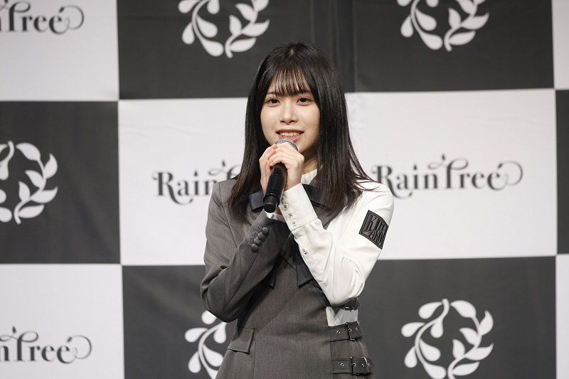 私は最初にこのシステムが発表された時から、絶対に17 人で選ばれたいという気持ちでしたし、それと同時に17 人で選ばれるためには絶対に自分自身も選ばれなくちゃいけないという強い気持ちで練習してきました。でも練習すればするほど自信を失っていっちゃって、頑張っているのに自分の弱さとか足りない部分に気づいて、アイドルに向いてないのかなとか思っちゃう時期もあったんですけど、それでもこうやってたくさん支えてくれる仲間とともに努力してこうして今ここに立つことができて率直に嬉しい気持ちもあります。いつかは絶対に17 人でパフォーマンスしたいと思っているので、もっと17 人のパフォーマンスが見たいなと思ってもらえるようにこのシングルでRain Tree という名前を背負って全力でこれまで以上に頑張っていきたいと思っています。これからもよろしくお願いいたします。