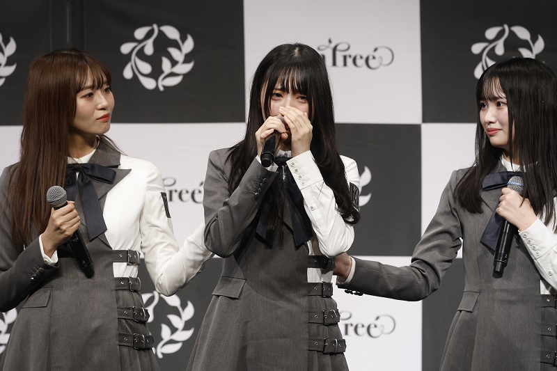 選んでいただき、ありがとうございます。私はこのセレクション期間今まで以上に頑張ってやりきってきたので、ここで選ばれなかったらどうしようという不安があったんですけど、まずはこの頑張った私の努力を認めていただけて嬉しいです。でもその反面、練習期間メンバーと一緒に頑張ってきたので、今ここに呼ばれていないメンバーのことを考えるとすごく複雑な気持ちになるんですけど、絶対選ばれたからにはその他のメンバーの分も背負って、1 枚目のデビューシングルは大事なシングルなので、そこでいいスタートが勢いよく切れるようにこのメンバーで頑張っていきたいです。私は、オーディションとかで一度も受かった事がなかったので、いままで応援してくださった方とか、メンバーにすごく感謝しています。この感謝をデビュー曲にぶつけたいと思います。ありがとうございます。