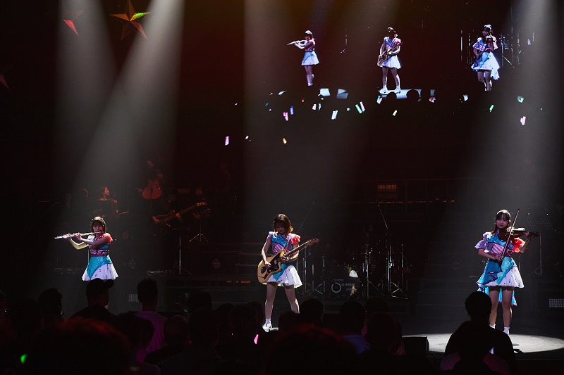 1曲目からバンドの生演奏による「HKT城、今、動く」。迫力あるバンド演奏はもちろん、寸劇や客席でのパフォーマンスなど、開演から会場のボルテージを一気に引き上げ、13周年記念にふさわしい幕開けとなった。「こんな時代に…」では、吉田めいがバイオリン、田中伊桜莉がフルート、秋吉優花がギターでバンドセッションに加わり、さらに大きな歓声があがった。