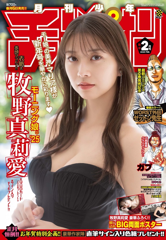 モーニング娘。‘25の牧野真莉愛さんが、6日発売の月刊漫画誌「月刊少年チャンピオン』2月特大号(秋田書店)の表紙&巻頭グラビアに登場している。